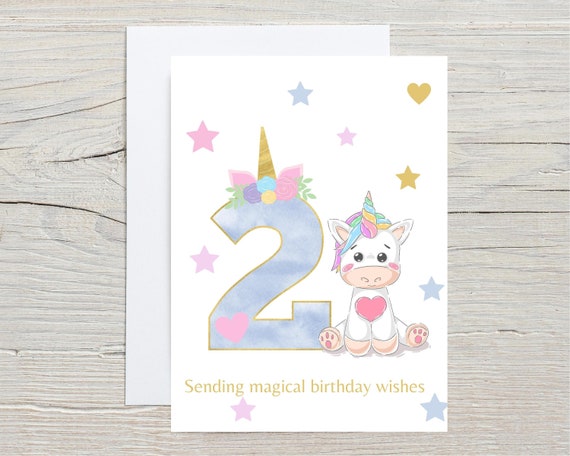 2 Year Old Unicorn Birthday Card, Sending Magical Birthday Wishes